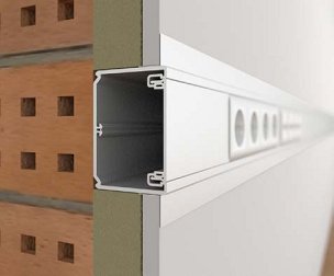 El diseño de las canales Unex permite adosar o encastrar el producto en paredes (mamparas, tabiques, etc.)
